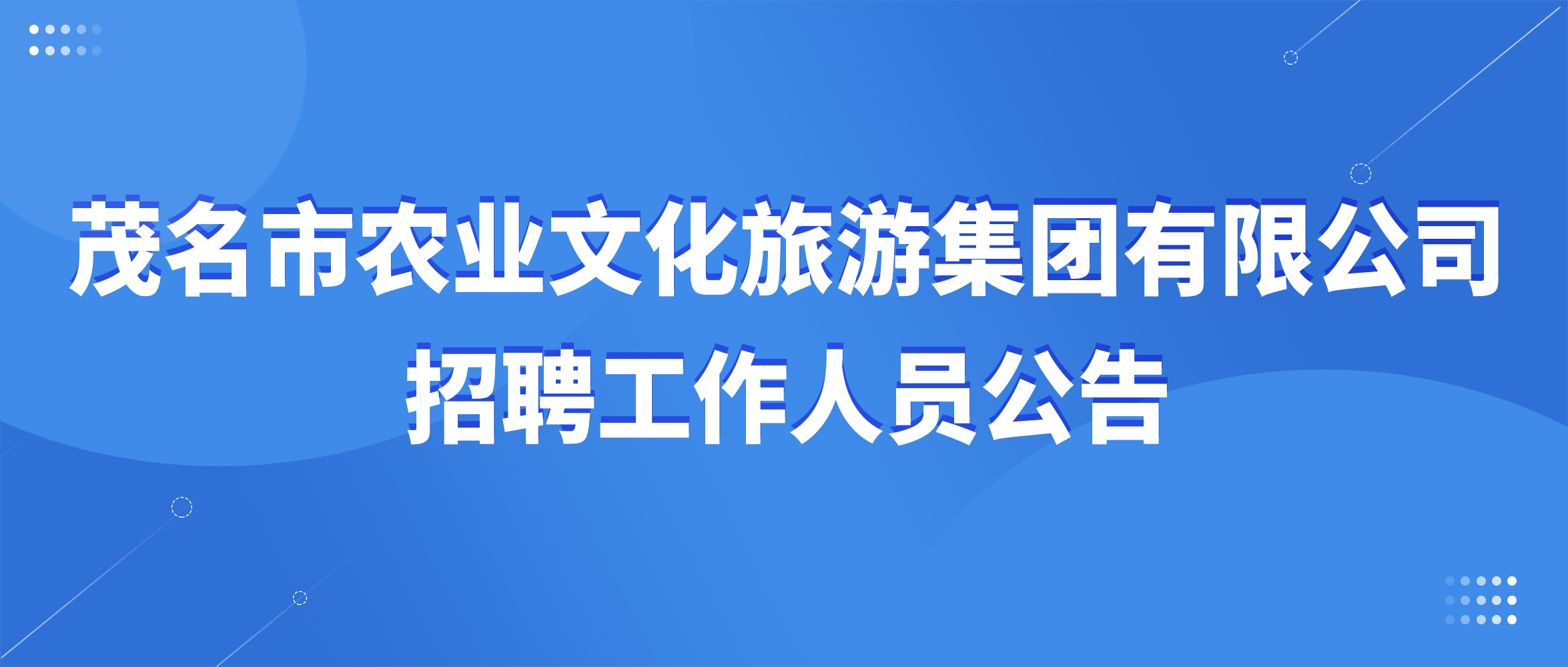 茂名市农业文化旅游集团有限公司招聘工作人员公告